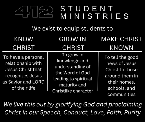 Stay up to date on all things 412 Student Ministries